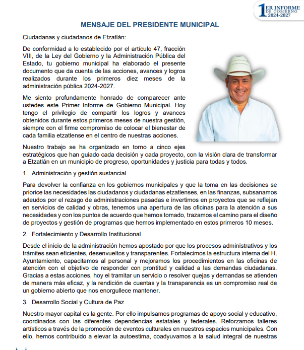 Conoce los informes de actividades del Ayuntamiento Constitucional de Etzatlán, aquí.